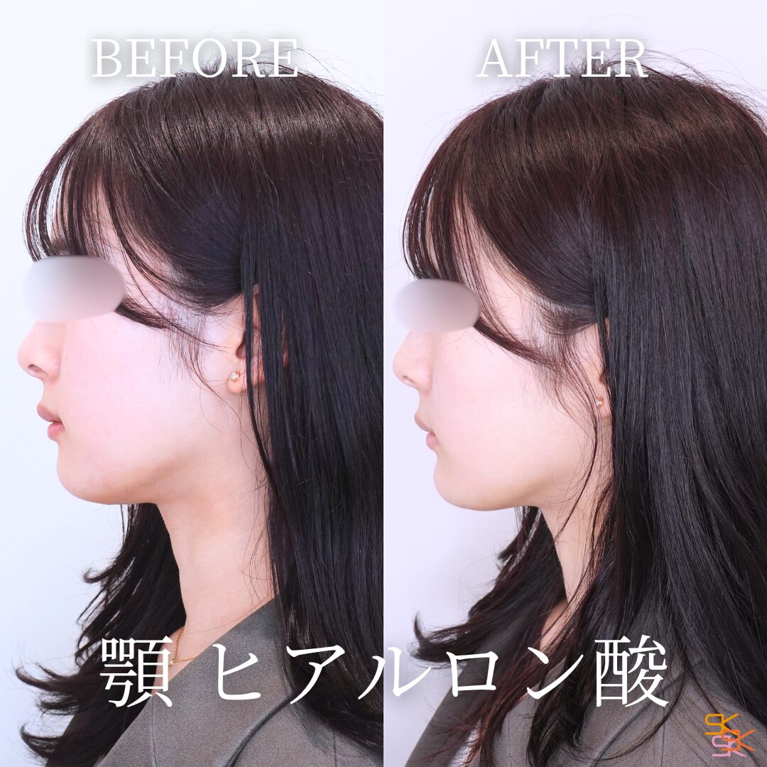 顎の形を整え、フェイスラインを美しく見せる施術です。ヒアルロン酸を顎に注入することで、顎を前に出してシャープにしたり、Eラインを整えたりすることができます。