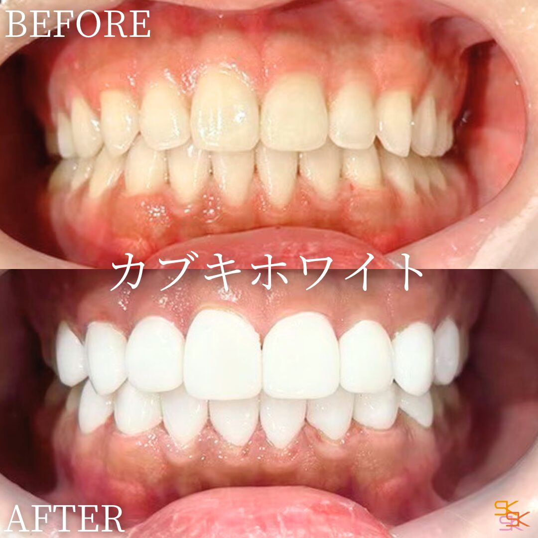 従来のセラミック治療では、歯を削る必要がありましたが、「カブキホワイト」は、大事な天然歯を残して、美しい歯並び綺麗な色を手に入れることができます。