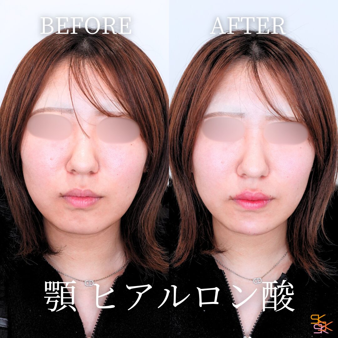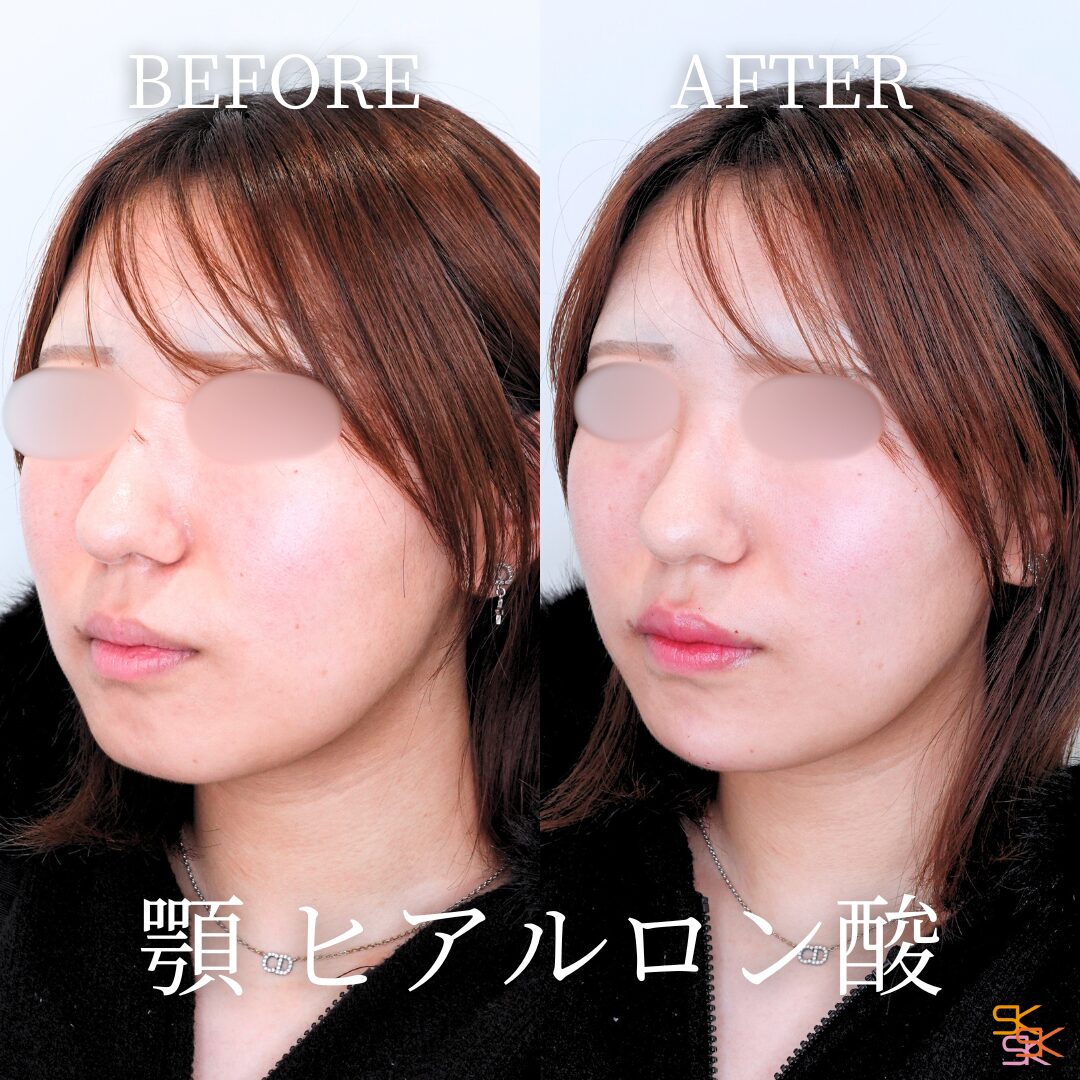 顎の形を整え、フェイスラインを美しく見せる施術です。ヒアルロン酸を顎に注入することで、顎を前に出してシャープにしたり、Eラインを整えたりすることができます。