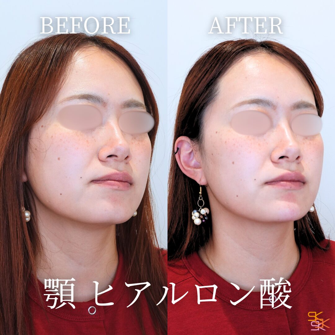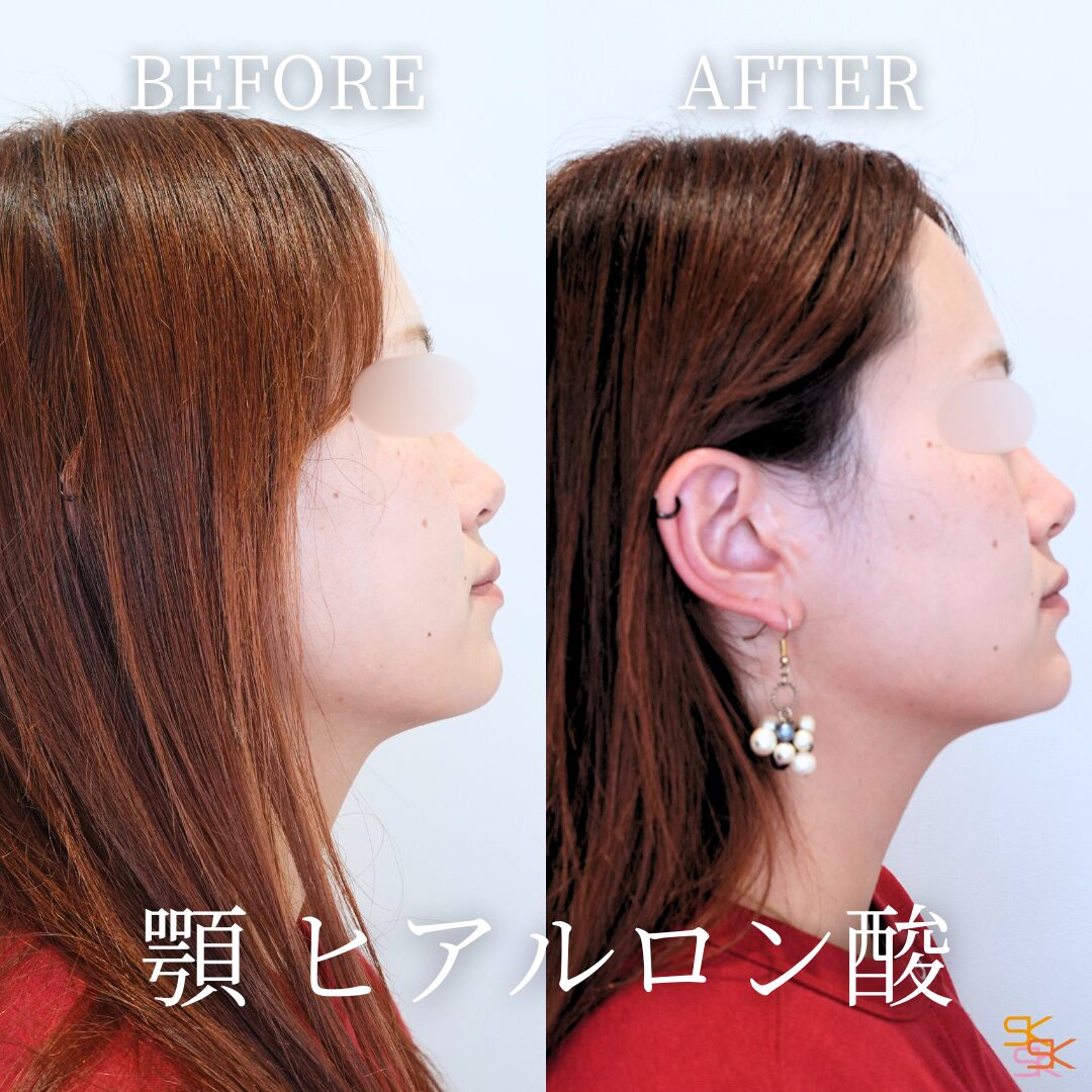 顎の形を整え、フェイスラインを美しく見せる施術です。ヒアルロン酸を顎に注入することで、顎を前に出してシャープにしたり、Eラインを整えたりすることができます。