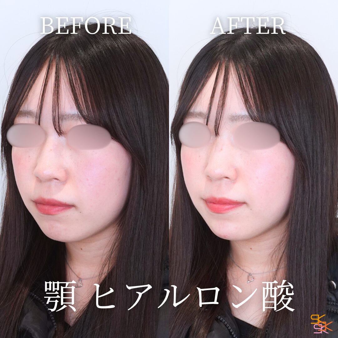 顎の形を整え、フェイスラインを美しく見せる施術です。ヒアルロン酸を顎に注入することで、顎を前に出してシャープにしたり、Eラインを整えたりすることができます。