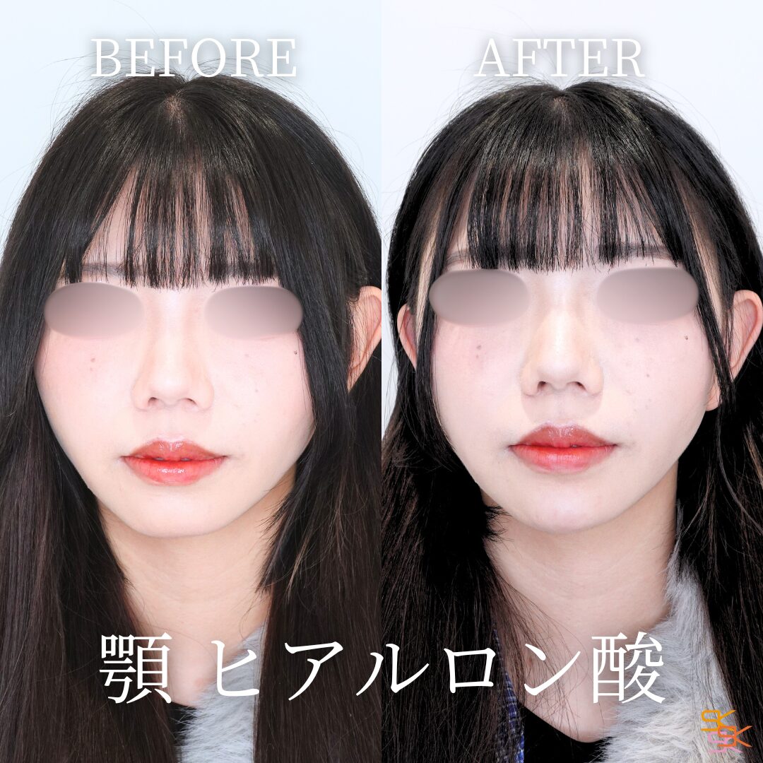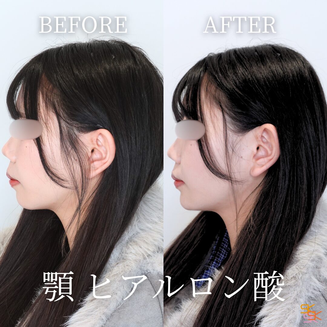 顎の形を整え、フェイスラインを美しく見せる施術です。ヒアルロン酸を顎に注入することで、顎を前に出してシャープにしたり、Eラインを整えたりすることができます。