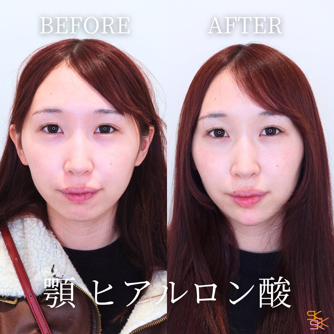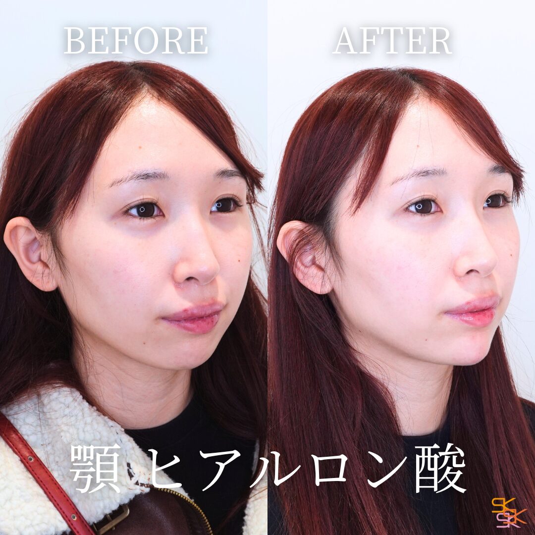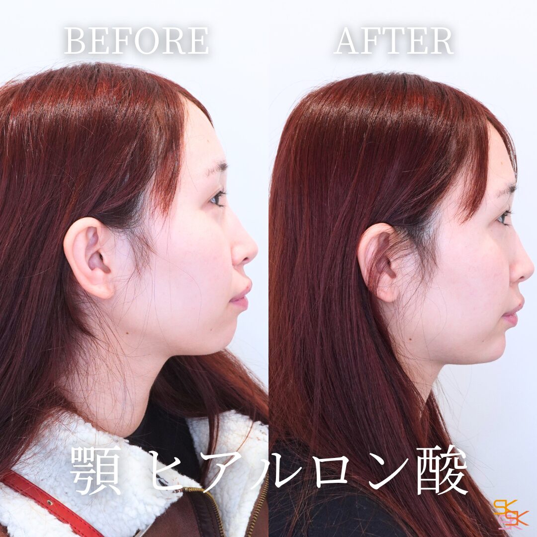 顎の形を整え、フェイスラインを美しく見せる施術です。ヒアルロン酸を顎に注入することで、顎を前に出してシャープにしたり、Eラインを整えたりすることができます。