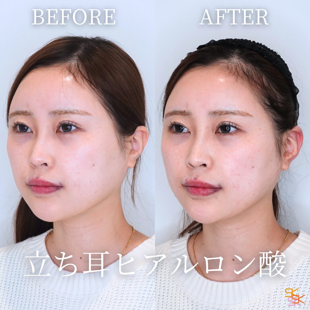 耳の裏側にヒアルロン酸を注入することで「立ち耳」の状態にすることができます。